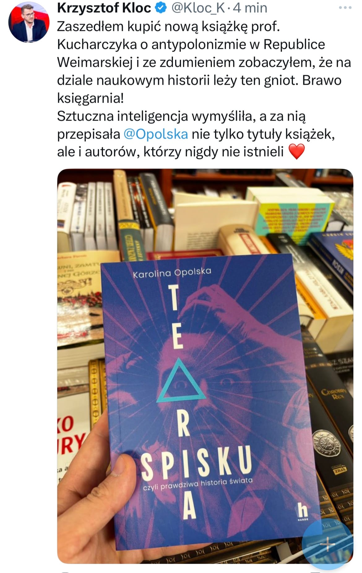 Internauci błyskawicznie wychwycili kompromitującą wpadkę redaktorki TVP i zalali platformę X lawiną komentarzy. Wytknęli Karolinie Opolskiej zmyślone przypisy, fikcyjne źródła i podejrzenie, że cała książka została wygenerowana przez sztuczną inteligencję. Wystarczyło kilka minut, by sprawa stała się viralem: