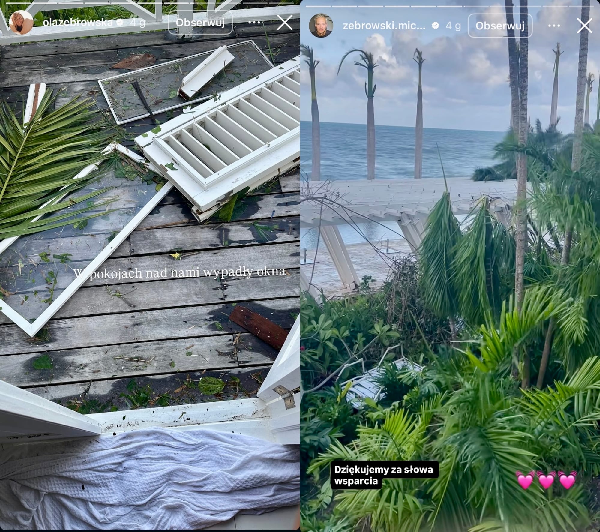 Michał Żebrowski z żoną i dziećmi przebywa na wakacjach na Jamajce. Od początku uderzenia huraganu Aleksandra relacjonuje sytuację na mediach społecznościowych. Aby być w bezpieczniejszym miejscu, rodzina Żebrowskich przeniosła się do hotelu bliżej lotniska. Spakowali także plecak z dokumentami i innymi niezbędnymi rzeczami na wypadek, gdyby zrobiło się niebezpiecznie.