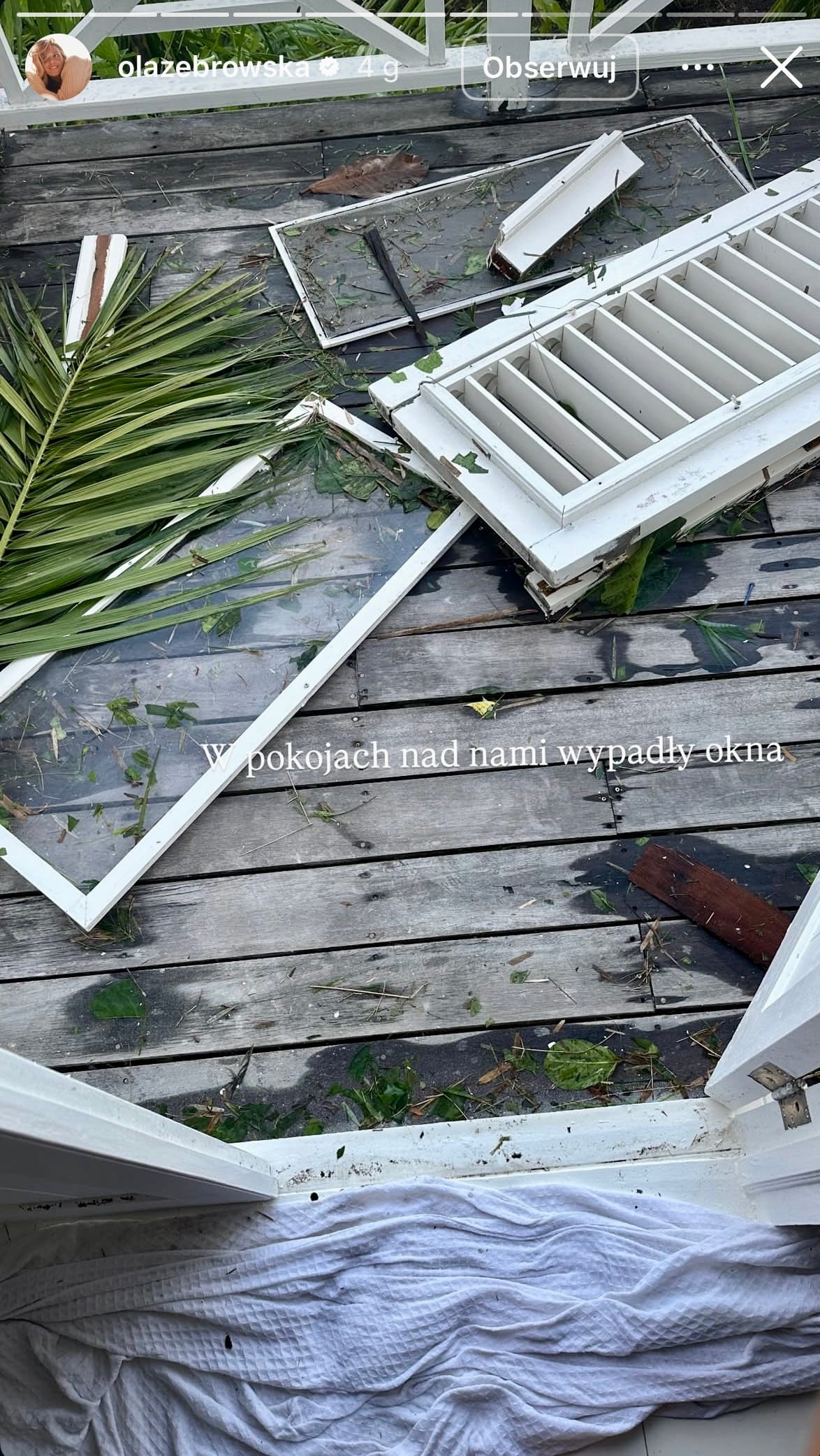 Gdy sytuacja się nieco uspokoiła, można zobaczyć, jakie straty poczynił żywioł. Na zdjęciach widać połamane drzewa i sprzęty, okiennice, które powypadały i powybijane okna.