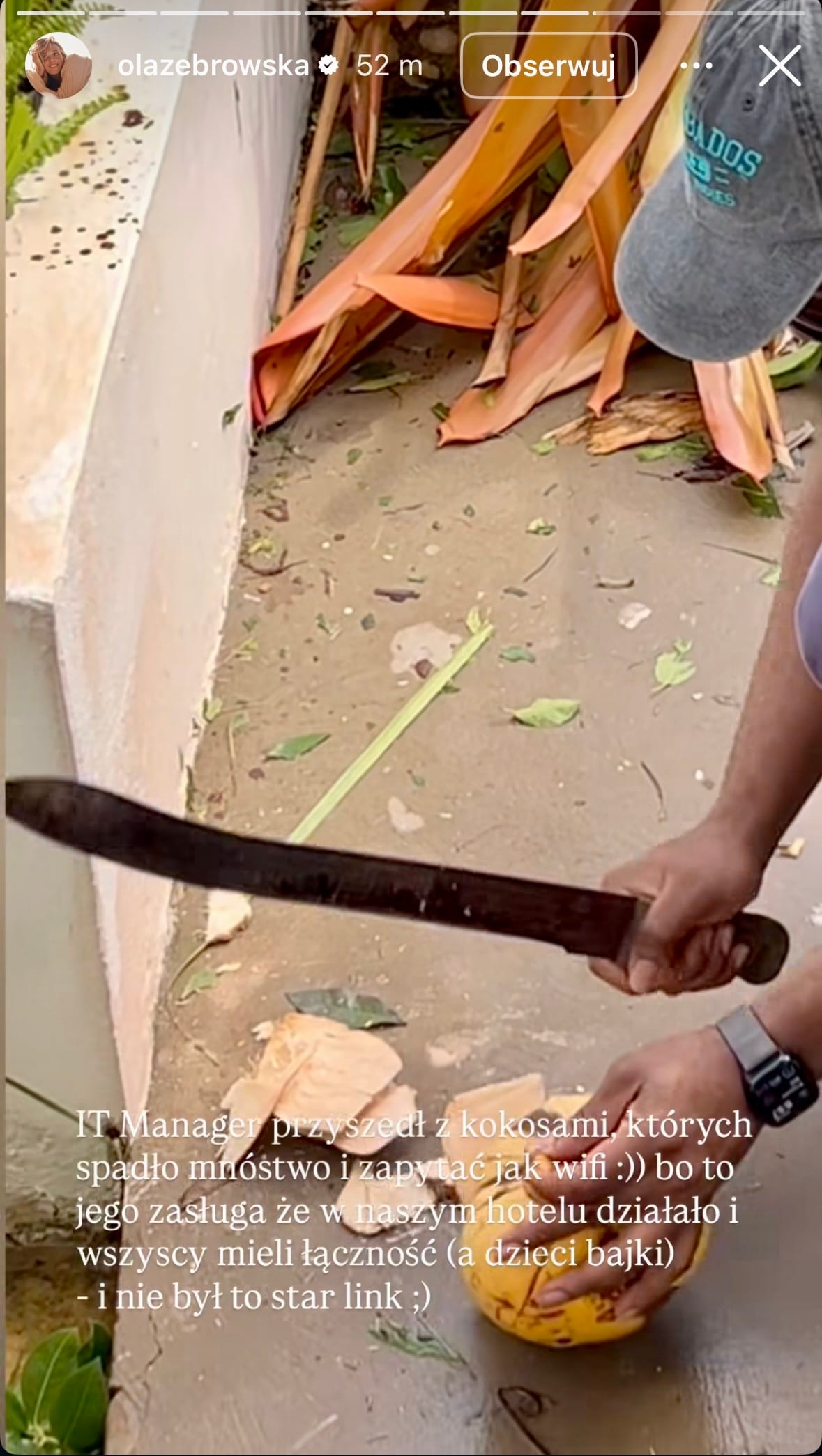 IT manager przyszedł z kokosami, których spadło mnóstwo i zapytać jak wifi. Bo to jego zasługa, że w naszym hotelu działało i wszyscy mieli łączność, a dzieci bajki i nie był to star link