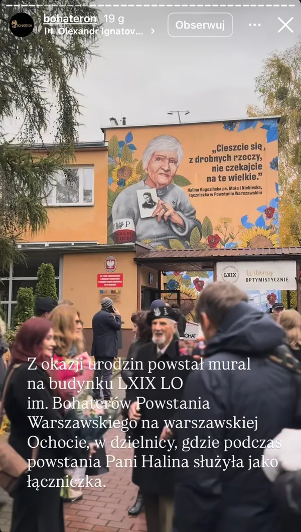 Warszawska szkoła uczciła 99. urodziny uczestniczki Powstania Warszawskiego - muralem