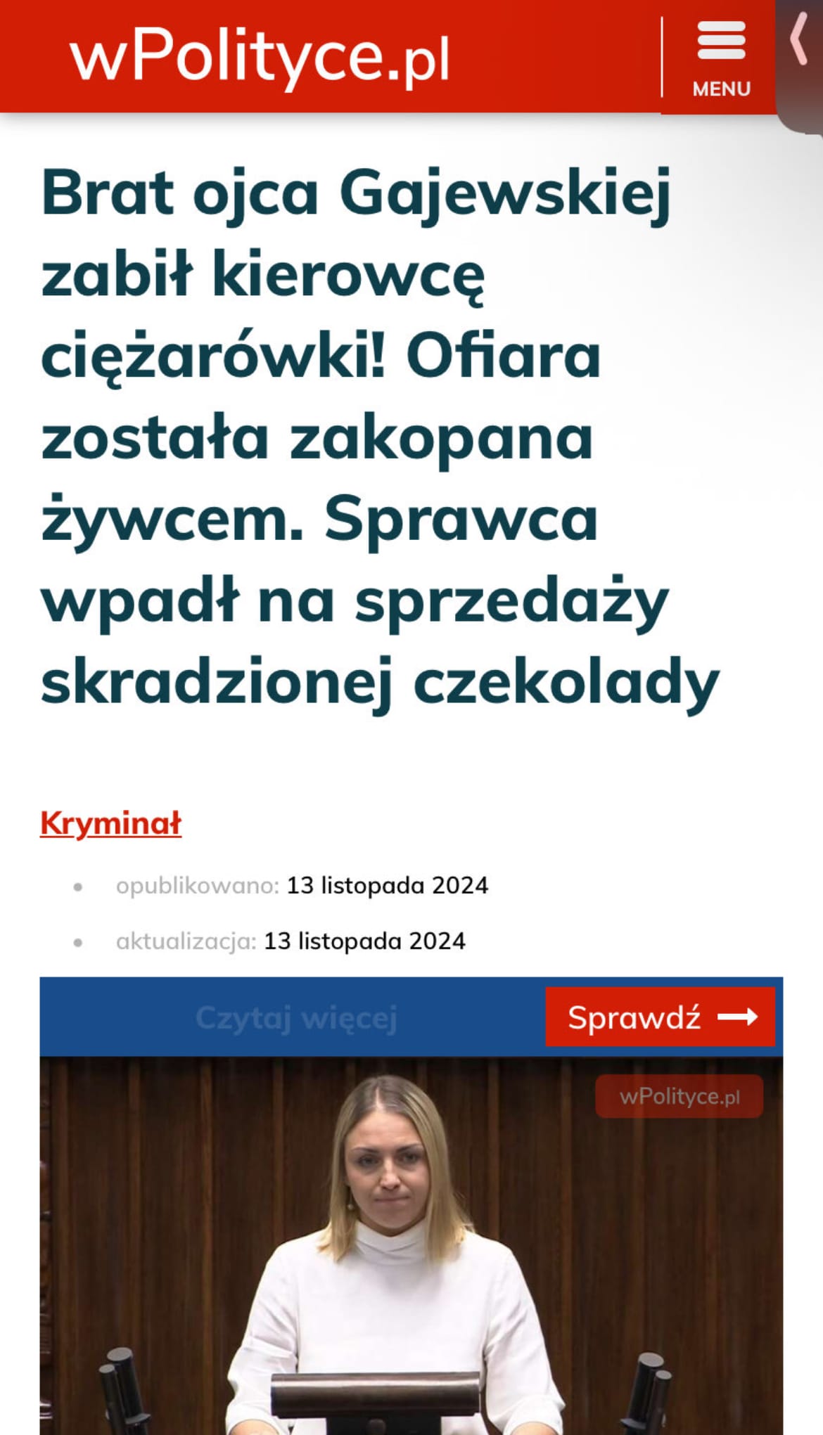 Sprawa nabrała jeszcze bardziej sensacyjnego tonu, gdy media przypomniały o brutalnym morderstwie z lat 80., w które miał być zamieszany ojciec Kingi Gajewskiej — teść Myrchy. Według „wPolityce.pl”, Piotr Gajewski miał zacierać ślady zbrodni dokonanej przez swoich braci, a ofiara została zakopana żywcem.