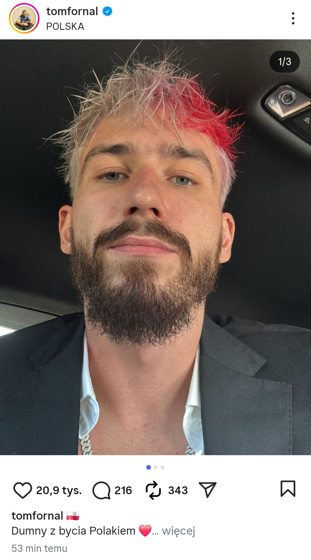Polską niepodległość świętował także polski siatkarz Tomasz Fornal, który opublikował zdjęcie z pomalowanymi w biało-czerwonych barwach włosach.
