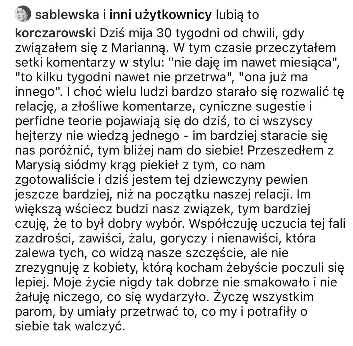 Ci wszyscy hejterzy nie wiedzą jednego - im bardziej staracie się nas poróżnić, tym bliżej nam do siebie! Przeszedłem z Marysią siódmy krąg piekieł z tym, co nam zgotowaliście i dziś jestem tej dziewczyny pewien jeszcze bardziej, niż na początku naszej relacji