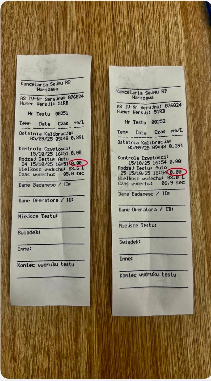 Aby odeprzeć zarzuty pod swoim adresem Jabłoński i Gosek poddali się więc badaniu alkomatem, w obecności Straży Marszałkowskiej.