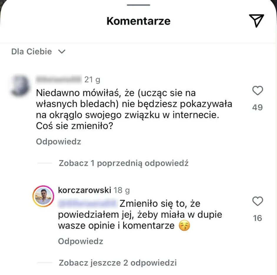 Na jedno z takich pytań od internautki – dlaczego znów relacjonuje swoje życie uczuciowe – odpowiedział sam Korczarowski. I zrobił to w swoim stylu: bez cenzury.