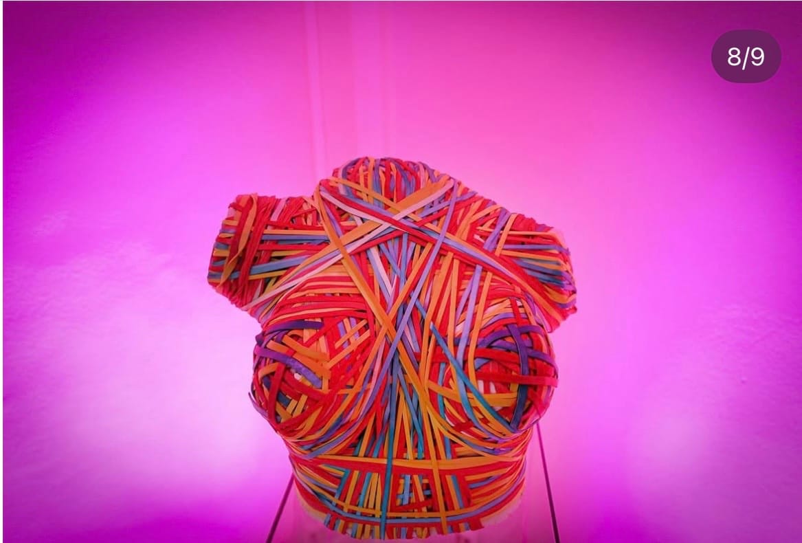 Najciekawszym eskoponatem jest dużych rozmiarów tablica, pokryta punkcikami przypominającymi kobiece sutki.