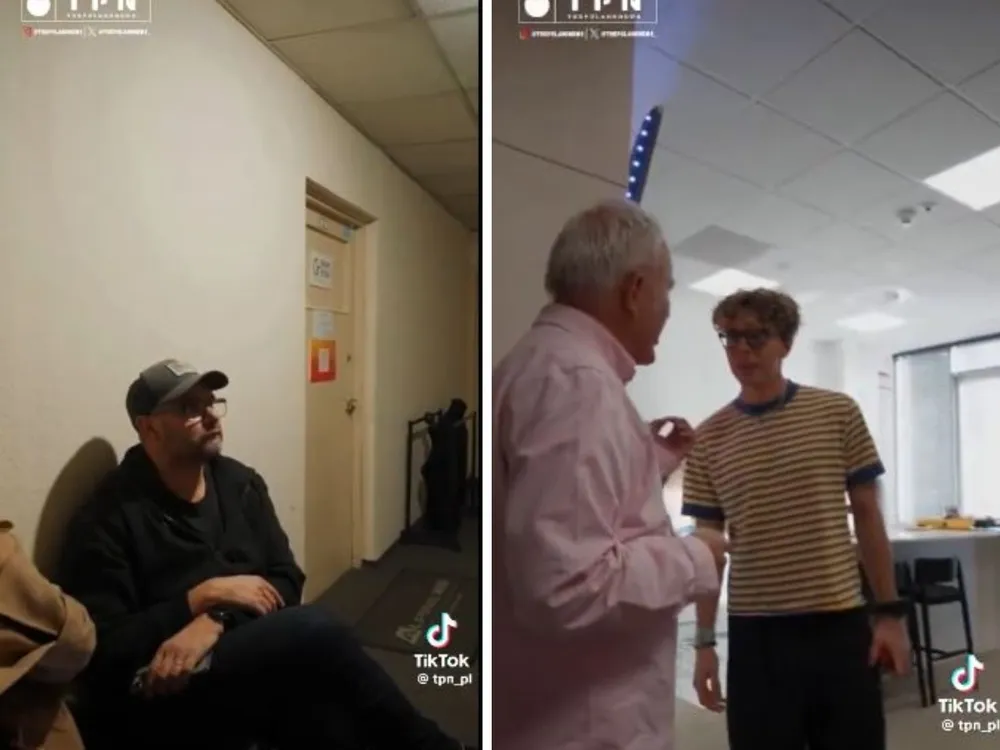 Krótką wymianę zdań między panami uchwycono na nagraniu, do którego doklejono reakcję Tomasza Karolaka, gdy influencer opowiedział mu o całym zajściu.