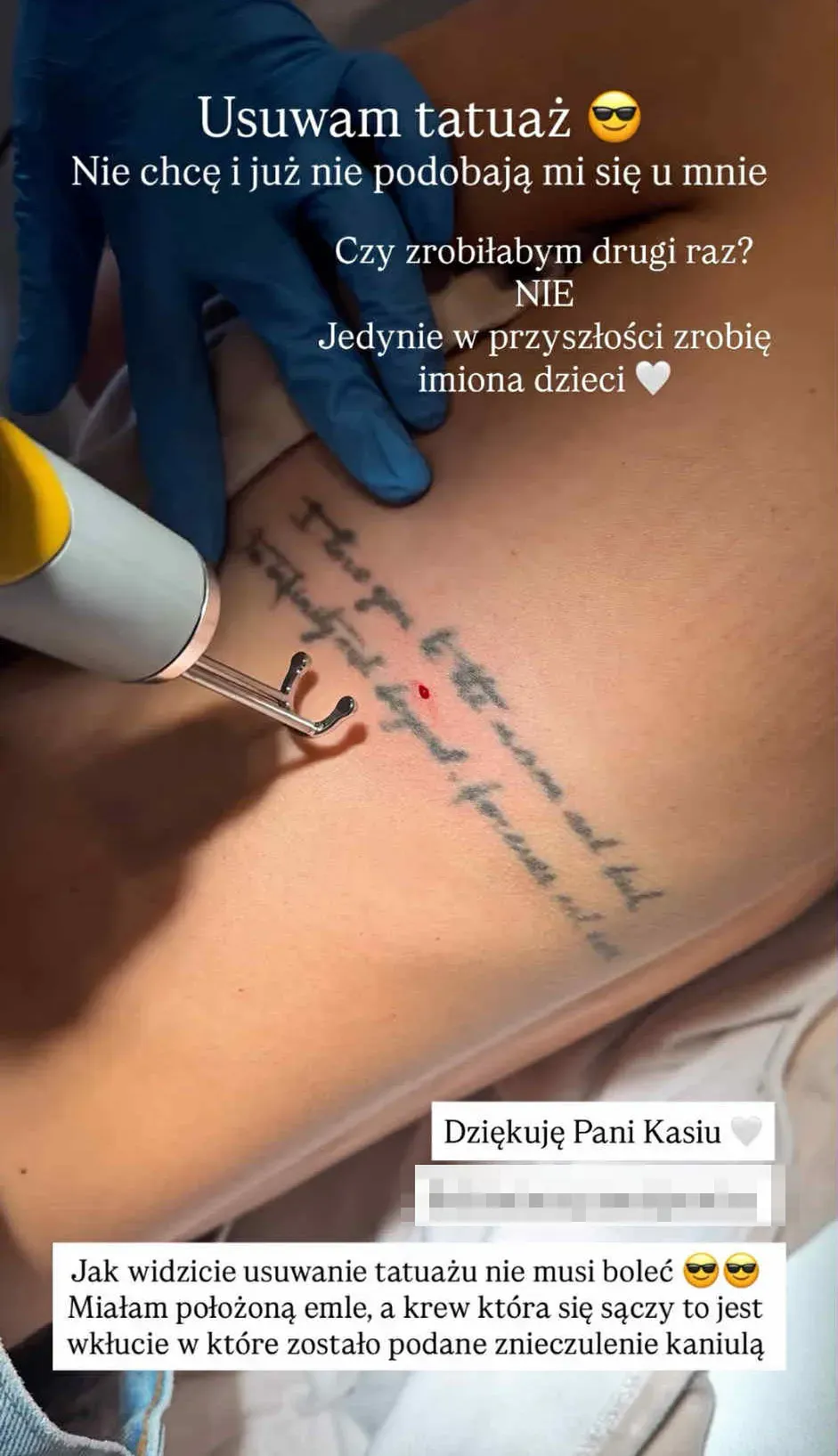 – Usuwam tatuaż. Nie chcę i już nie podobają mi się u mnie. Czy zrobiłabym drugi raz? Nie! Jedynie w przyszłości zrobię imiona dzieci