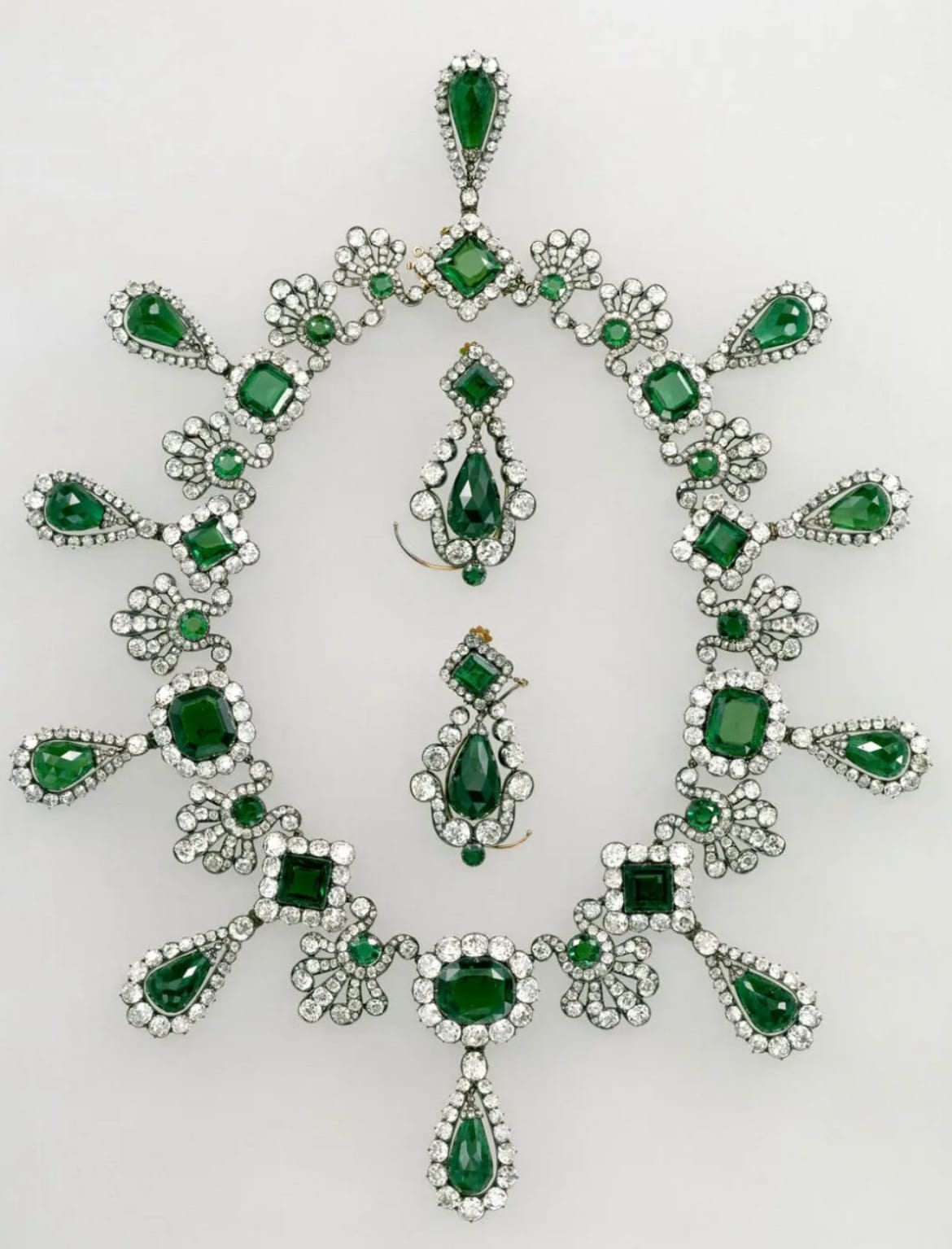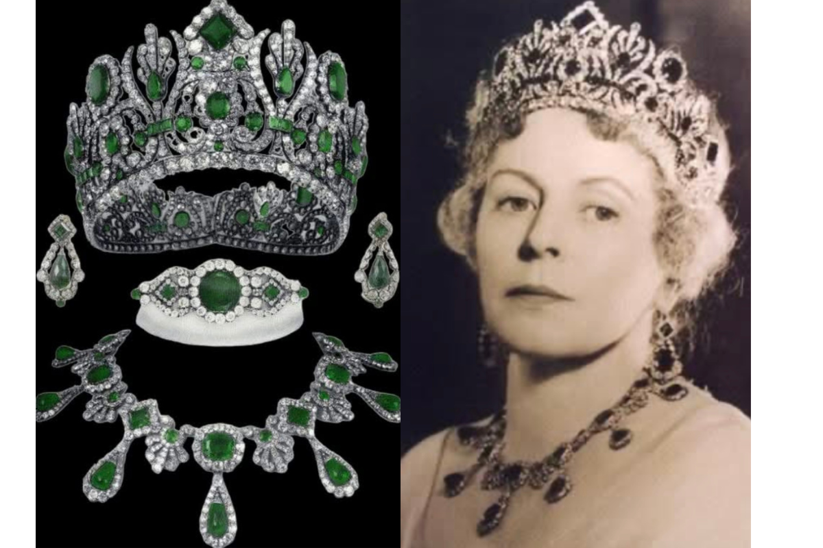 Szmaragdowy komplet: tiara, naszyjnik, kolczyki i brosza — zostały wykonane w 1810 roku przez paryskiego jubilera Etienne Nitot et Fils jako prezent od Napoleona Bonaparte dla jego drugiej żony, Marii Luisy Habsburskiej. Po upadku cesarstwa Maria Luisa wróciła do Austrii, zabierając ze sobą klejnoty, które przez kolejne dekady pozostawały w rękach jej habsburskich krewnych.
