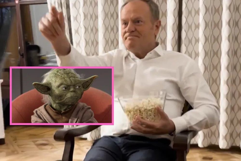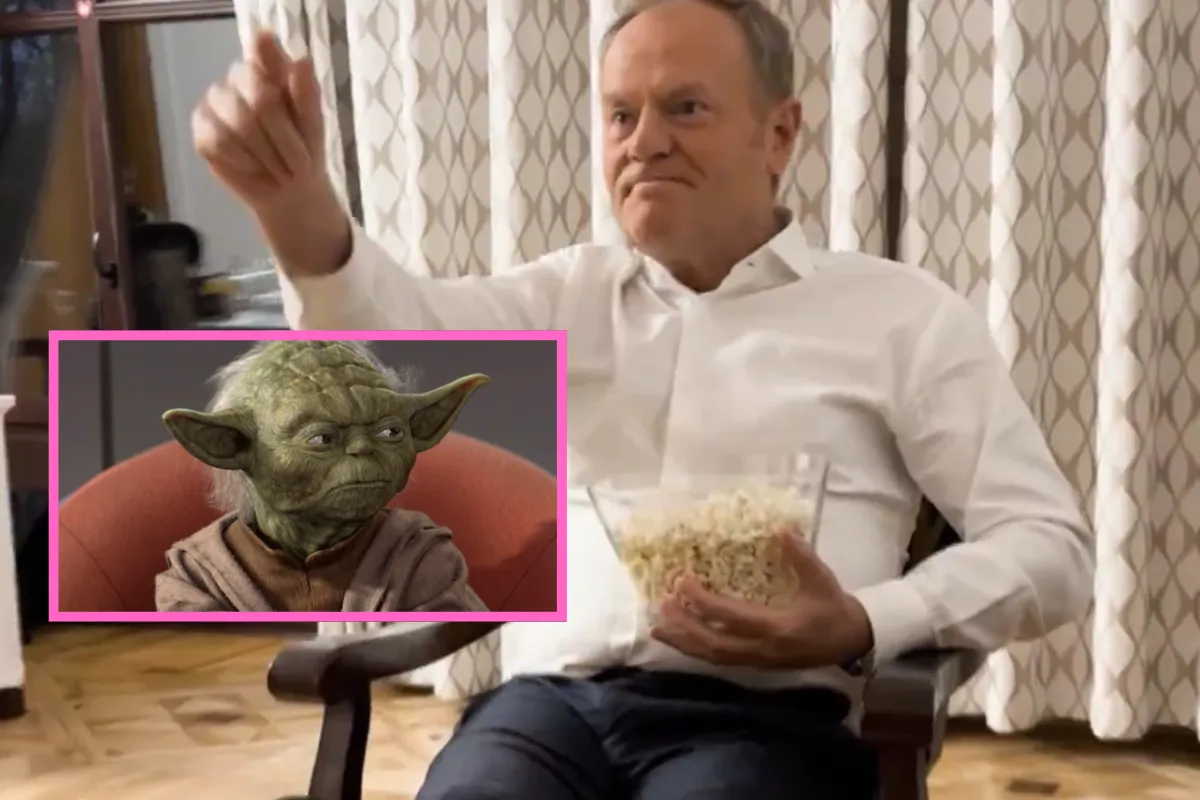 Donald Tusk wrzucił na X filmik, w którym siedzi nonszalancko z butami na fotelu, pstryka palcami, je popcorn i twierdzi, że najbardziej lubi Gwiezdne Wojny.