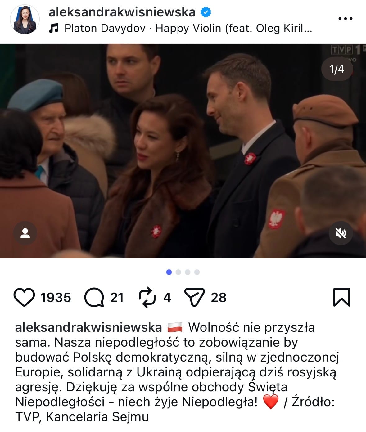 O odznaczeniu dla męża nawet słowem nie wspomniała posłanka KO Aleksandra Wiśniewska-Uznańska (31 l.). Można przeglądać dokładnie wszystkie jej media społecznościowe, ale nie znajdziemy nic. Jest jedynie okolicznościowy wpis z Dnia Niepodległości i zdjęcia z Placu Piłsudskiego - tak, z mężem...