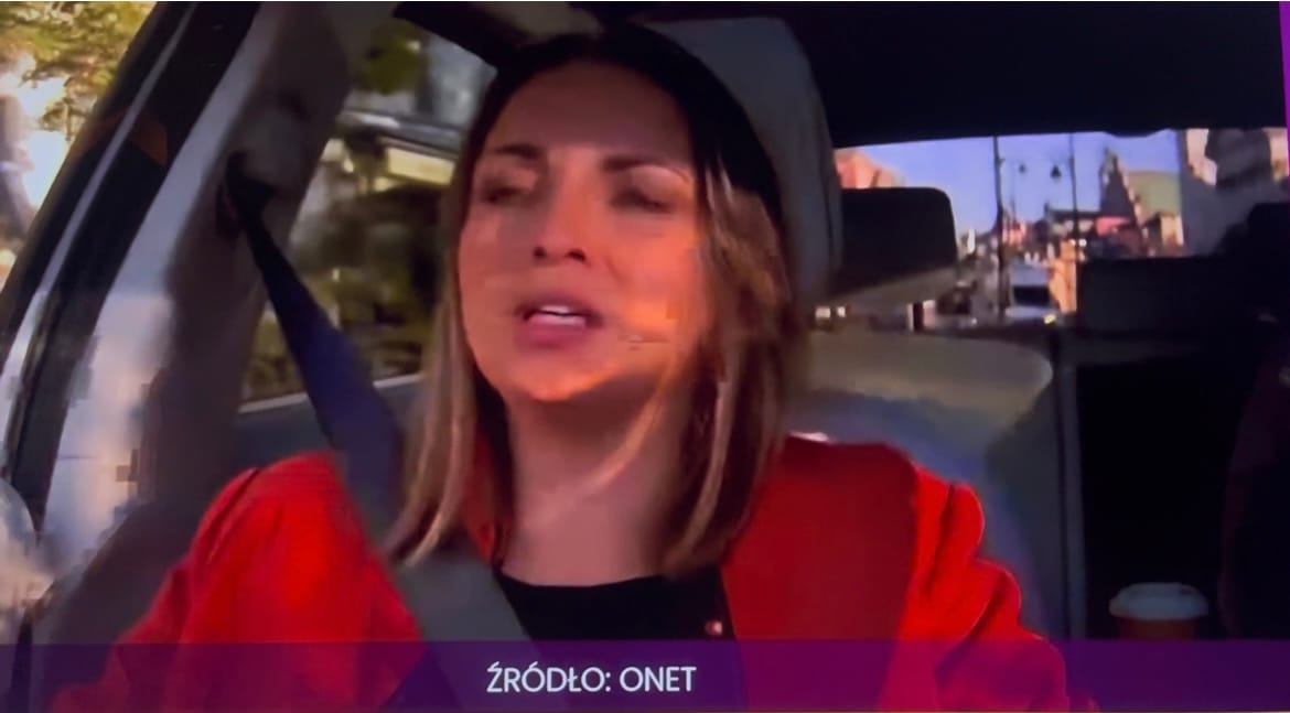Na nagraniu samochód kierowany przez dziennikarkę Onetu, Odetę Moro, najpierw jedzie ulicą Miodową, gdzie od jakiegoś czasu stoi zapora i tablica informująca o zamknięciu Krakowskiego Przedmieścia z powodu zdjęć do serialu „Lalka”. Mimo to, auto z siedzącą obok Kingą Gajewską swobodnie wjeżdża na Krakowskie Przedmieście — bez żadnych przerw w materiale, bez zatrzymania, bez okazania identyfikatora.