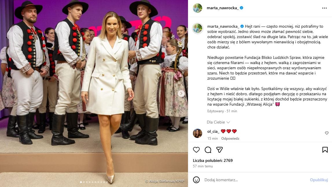 I to z hejtem właśnie chce walczyć Pierwsza Dama za pomocą fundacji, którą tworzy. A zanim organizacja powstanie, Marta Nawrocka postanowił wesprzeć inną, przekazując swoją sukienkę na licytację.