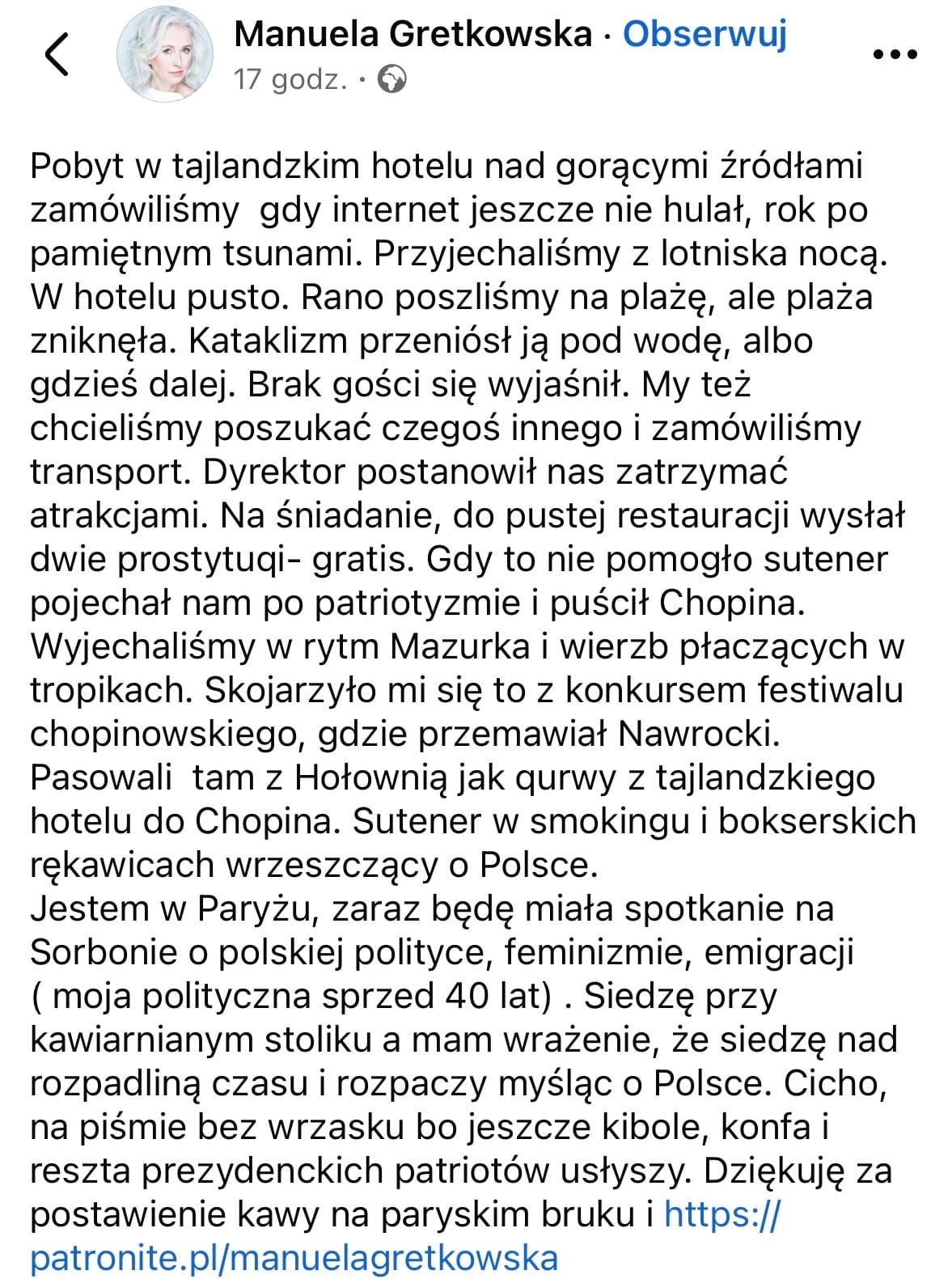 - pisze Gretkowska i podłącza link do swojego konta na Patronaite.